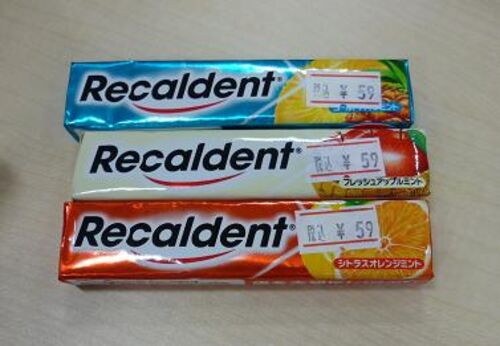 リカルデント パイン、アップル、シトラスオレンジ おかしのまちおかで売ってたリカルデントです。 1個59円~、これって半額ぐらいかな? まとめて3本買っちゃいました。この値段なら ボトル入よりもお得なのかも?だれかボトル入りの 数を数えて比べた…