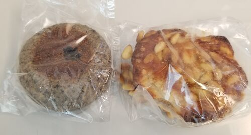 新大阪駅のパン屋さんでかった黒ごまアンパンと松の実のパンです。在来線のほうのお土産物屋さんの中にあるパン屋さんです。新大阪駅ってラーメンの神座があったり、食べ物屋さんも色々充実してますね。 くろごまアンパン、松の実パン