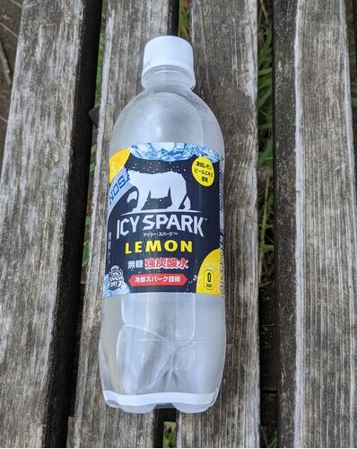 くまさんマークの炭酸水です。冷却スパーク技術とかで炭酸が強めらしいんだけど、いまいちどういう技術化わからないなぁ。。。強めの炭酸絵レモン味です。レモンピールエキス入りでほんのり酸味と苦味もあります。 アイシー・スパーク レモン味