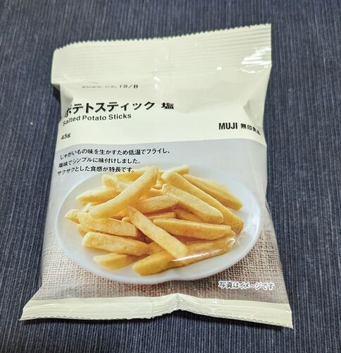 無印のポテトスティックです。シンプルな塩味。低温でフライしてるみたいで、カットもスティックタイプで食感が結構固め。さいきんローソンでも無印の商品扱い始めてるみたいで、おやつとかカレーのレトルトとか並んでて買っちゃいますね。 ポテトスティック…