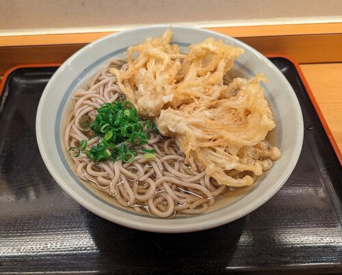 新宿のお蕎麦屋さん、かのやの季節の天ぷらそばです。今回はえのきの天ぷら。そば大盛りの関西だしにしてます。えのきが広がって大きく見えますけど、量としては普通のかき揚げと同じですね。値段も一緒。 えのき天ぷらそば