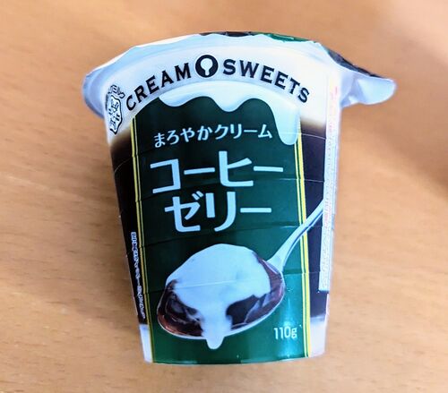 メグミルクのコーヒーゼリーです。上にのってるクリームが結構たっぷりです。牛乳メーカーのコーヒーだからかな。ゼリー部分も結構甘め。ちょっとなにか食べたいときにちょうどいい110gサイズ。 コーヒーゼリー
